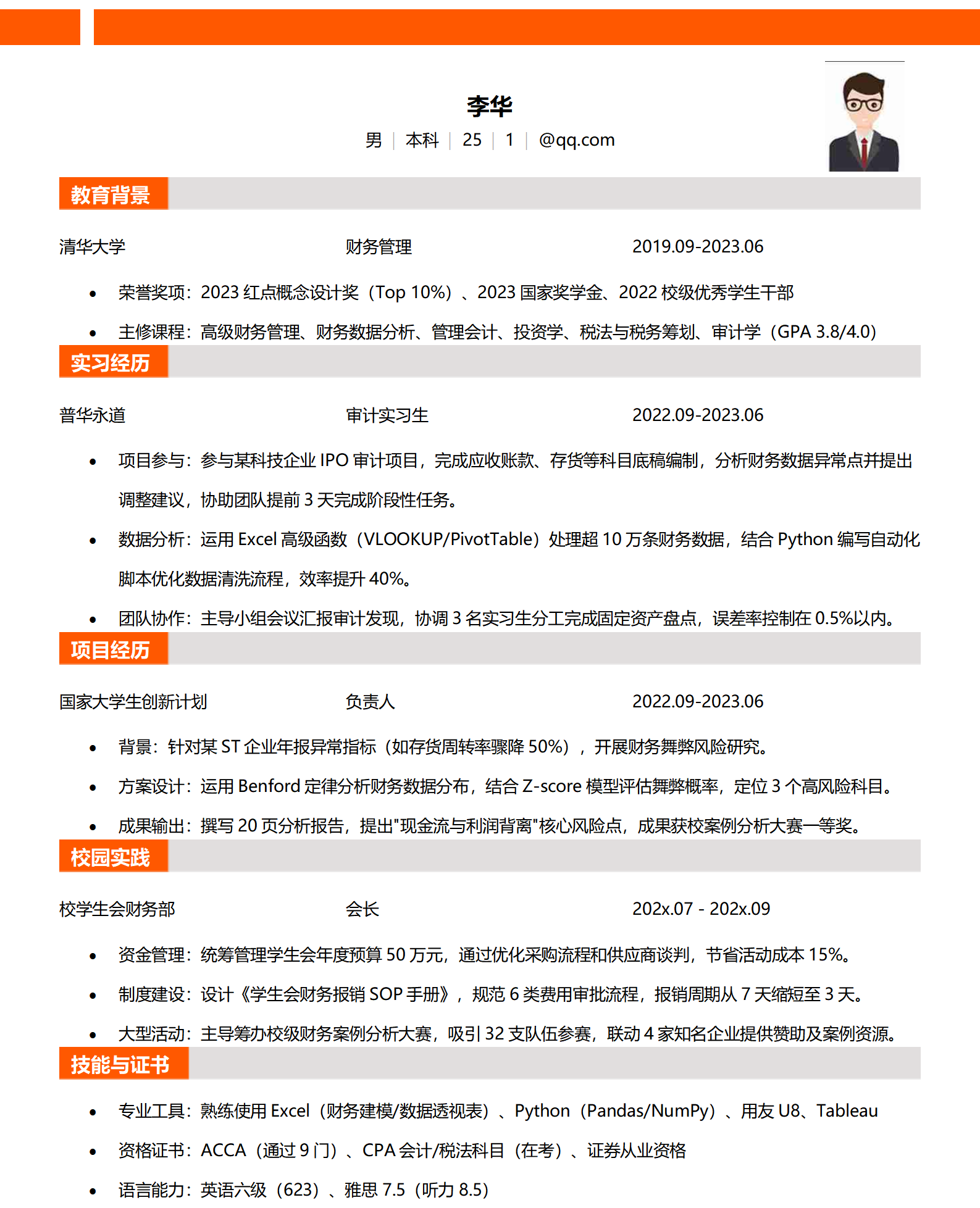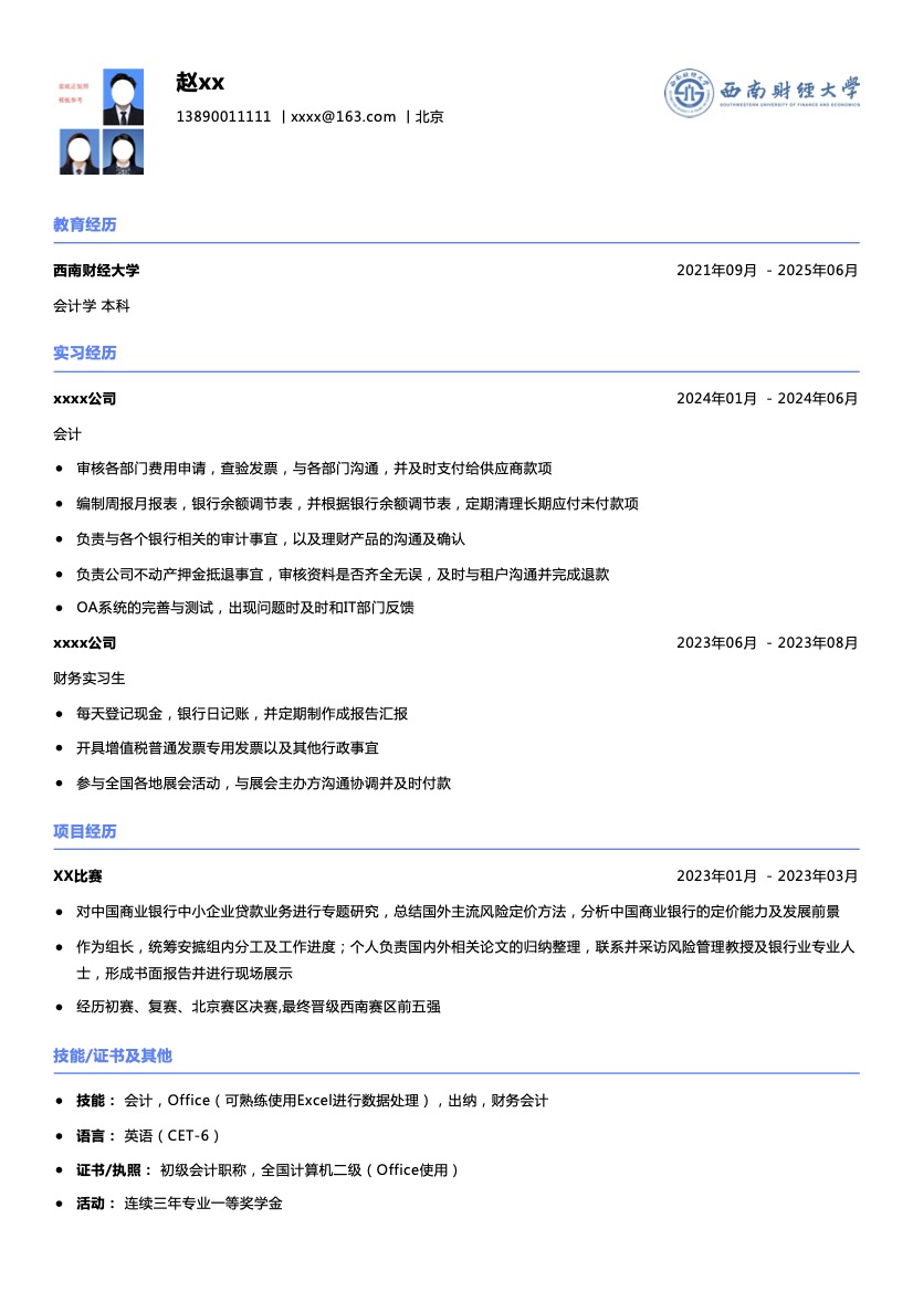 精算财务,稳健护航,让简历展现你的会计专业能力。