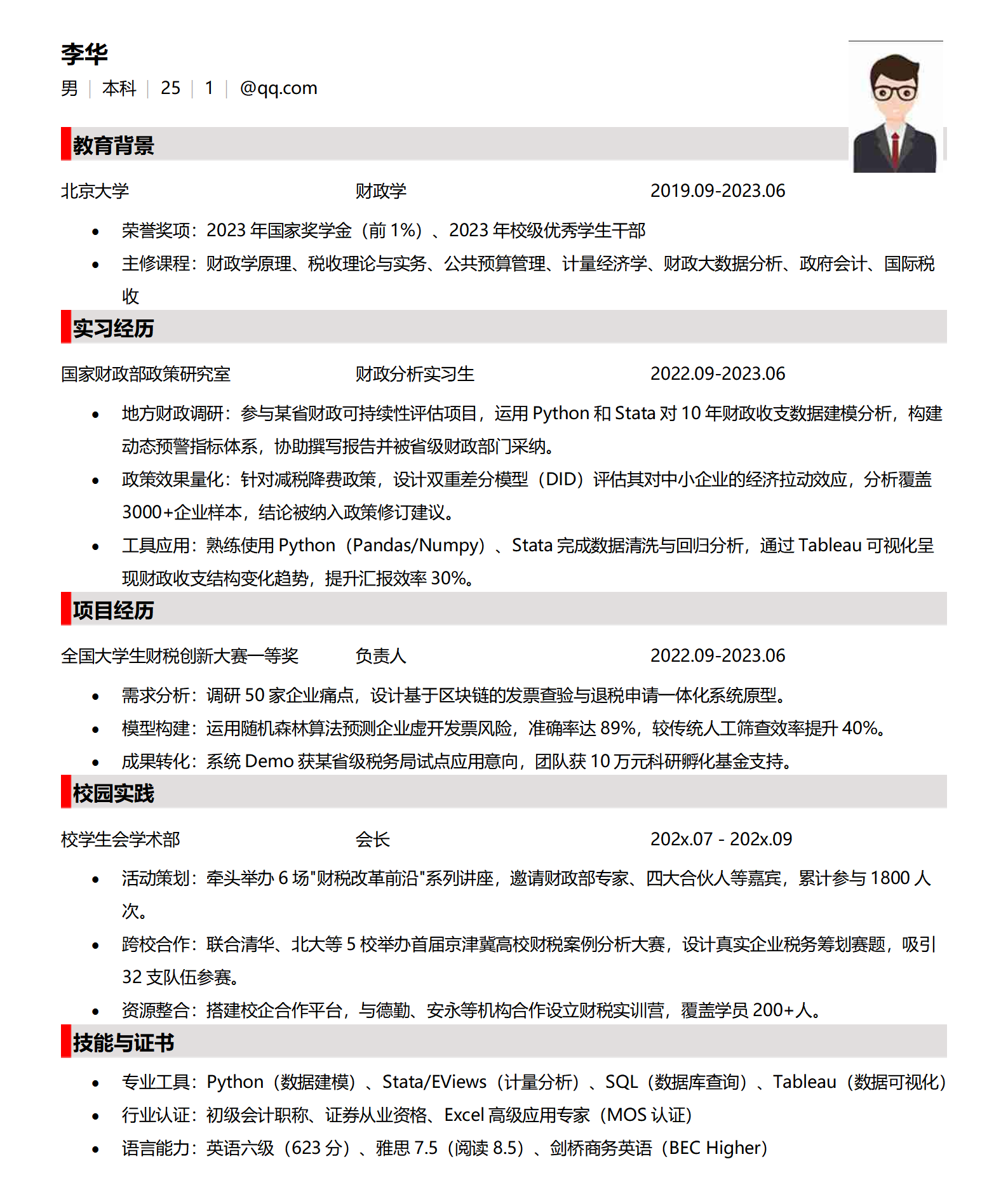 财政收支,政策分析,让简历彰显你的财政专业能力。